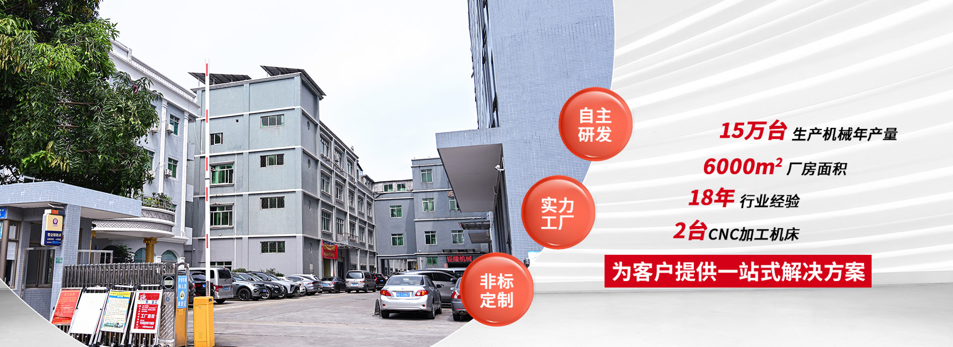 本公司成立于2006年,位于中國廣東省東莞市,是一家專業(yè)自主研發(fā),生產(chǎn)、銷售全自動噴膠機、折邊機的企業(yè),現(xiàn)有廠房6000多平方米年生產(chǎn)機器達15萬臺。5臺CNC加工機床,生產(chǎn)工廠集鑄造、機械加工、噴涂、組裝檢測為一體,有較強的生產(chǎn)能力和產(chǎn)品研發(fā)能力。
